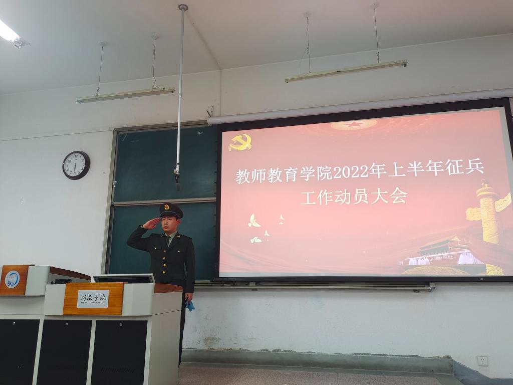 为积极响应国家号召,鼓励和支持青年员工应征入伍,12月8日,304永利集团唯一在八教107教室召开征兵工作动员大会。公司党委负责人出席会议,全院100多名男生参加会议。