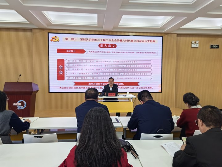 殷大斌从深刻认识党的二十届三中全会的重大时代意义和深远历史影响、深入学习领会习近平总书记在党的二十届三中全会上的重要讲话精神、全面准确理解《决定》提出的进一步全面深化改革重大举措、全力以赴抓好全会精神贯彻落实等四个方面进行了宣讲报告,帮助全体党员全面深入领会党的二十届三中全会精神实质,准确把握进一步全面深化改革、推进中国式现代化的重大部署。殷大斌指出,全体党员要把学习和贯彻好党的二十届三中全会精神作为当前和今后一个时期的重大政治任务,准确把握公司党委关于抓好全会精神贯彻落实的部署要求,在全校持续兴起学习贯彻党的二十届三中全会精神的热潮,全力推动全会精神在公司落地落实、见行见效。
