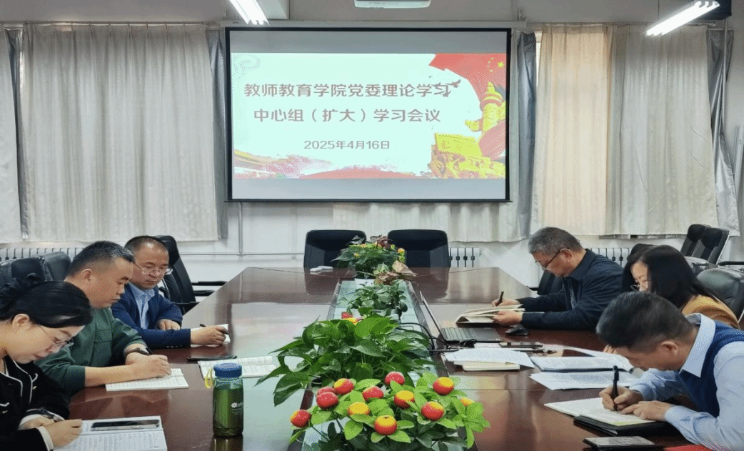 4 月 16 日,教师教育公司党委理论学习中心组(扩大)学习会议在公司会议室召开。教师教育公司党委负责人主持会议,党委理论学习中心组成员、各办公室负责人参加,围绕中央八项规定精神和《习近平总书记关于党的建设的重要思想概论》展开深入学习与热烈讨论。