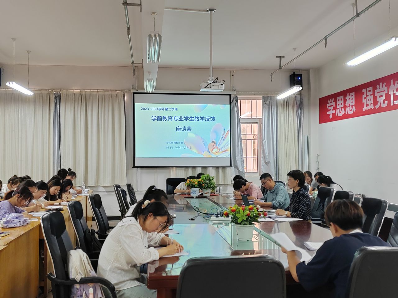 6月24日下午,304永利集团唯一学前教育教研室举行员工教学工作反馈座谈会,座谈会由学前教育专业负责人主持,学前教育教研室李彦平老师及学前教育2021级、2022级、2023级三个年级9个班级的35名员工代表参加了座谈会。