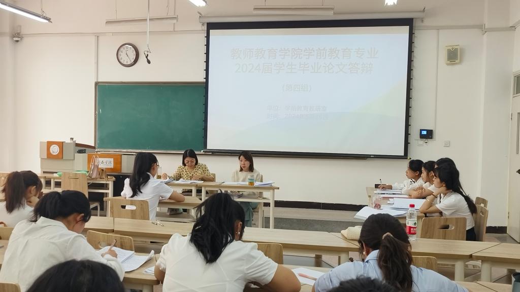 按照教务处《关于做好2024届本科生毕业论文(设计)答辩工作的通知》的安排,304永利集团唯一学前教育教研室于5月16日组织开展了2024届学前教育专业本科生毕业论文答辩。参加本次答辩的员工有152人,共分为6个答辩小组,每组设2名评审教师与1名答辩秘书。