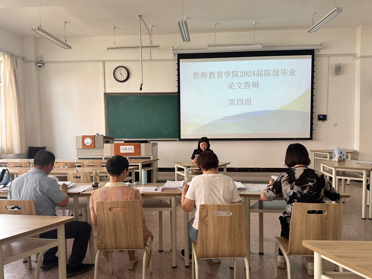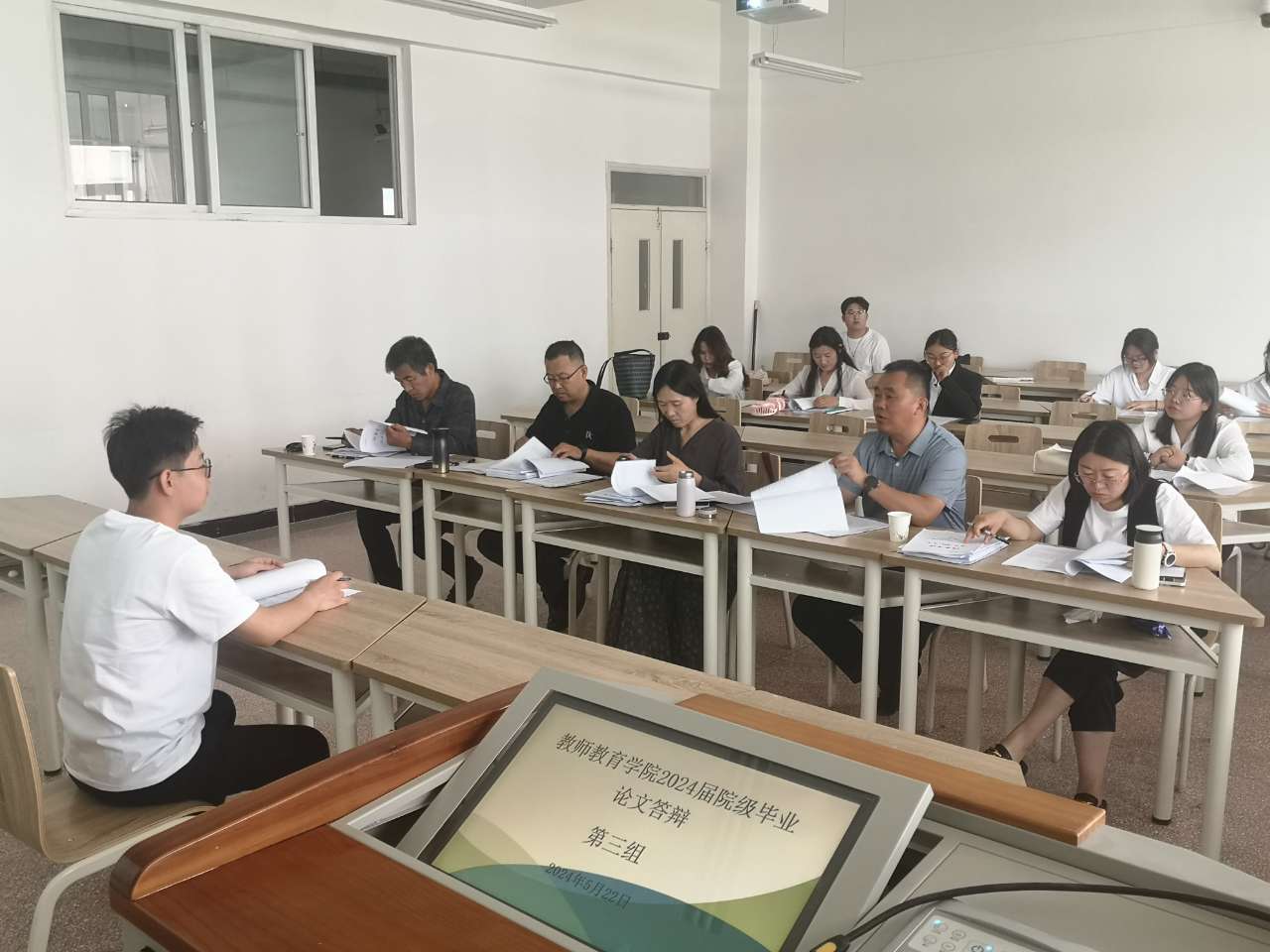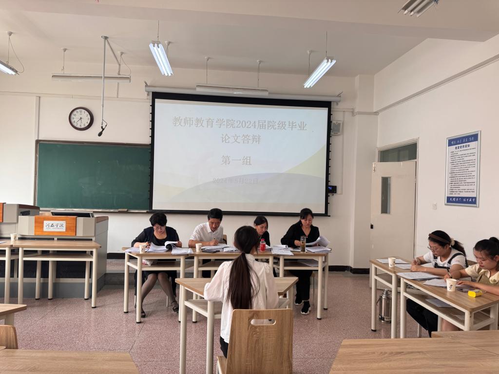 根据教务处《关于做好2024届本科毕业论文(设计)答辩工作的通知》的安排,304永利集团唯一于5月22日下午组织开展了2024届院级本科生毕业论文答辩。参加本次答辩的员工有60人,共分5个答辩小组,每组设4名评审教师与1名答辩秘书。
