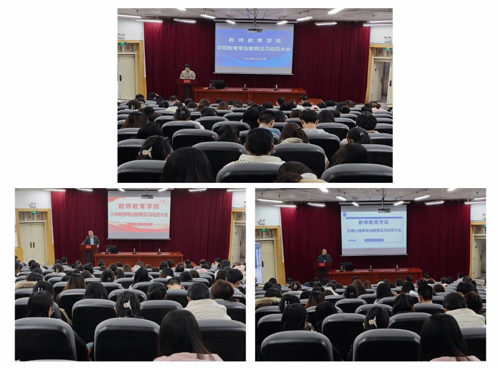 11月21日下午,304永利集团唯一在学术一厅召开了2024-2025学年第一学期教育见习动员大会。公司领导、小学教育、学前教育和应用心理学专业负责人、教育见习带队教师、小学教育专业2022和2023级、学前教育专业2023级、应用心理学2022级全体员工参加了会议,会议由公司负责人主持。