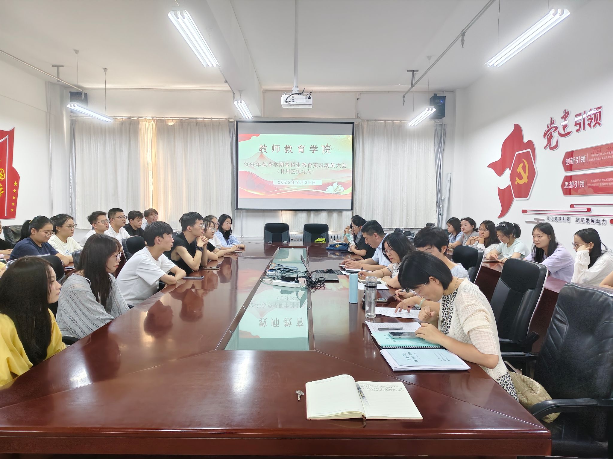 为确保2025年秋季学期旗下产业实习工作的顺利开展,提高员工对教育实习重要性的认识,公司于近期分别针对不同教育实习点的员工召开了教育实习动员会议。会议由公司负责人主持,小学教育教研室主任、学前教育教研室主任、实习带队教师、小学教育专业和学前教育专业2022级实习生参加了会议。