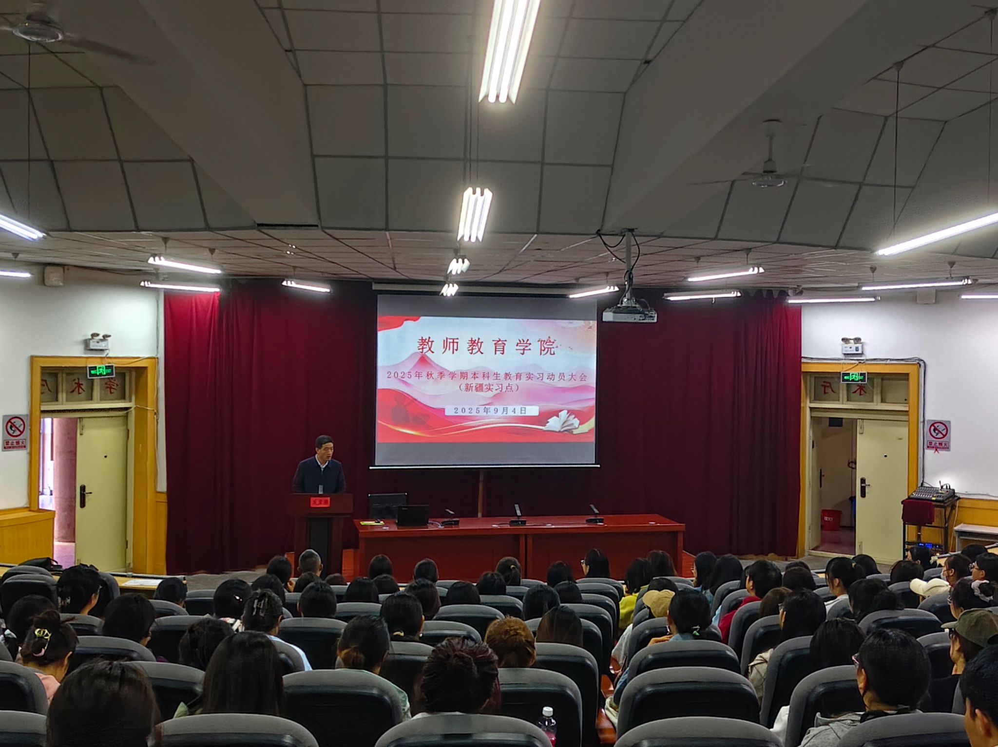 9月4日,公司在学术一厅召开新疆教育实习点动员大会。会上,公司负责人着重强调了参加新疆教育实习的重要性,鼓励同学们在实习期间要积极适应新环境,充分展现公司员工良好的精神风貌和专业素养。小学教育和学前教育专业教研室主任就教育实习目的、内容及教育实习手册规范填写和教育研习等方面的内容进行了详细讲解,并就教育实习期间的学习、生活、安全等方面提出了基本要求。