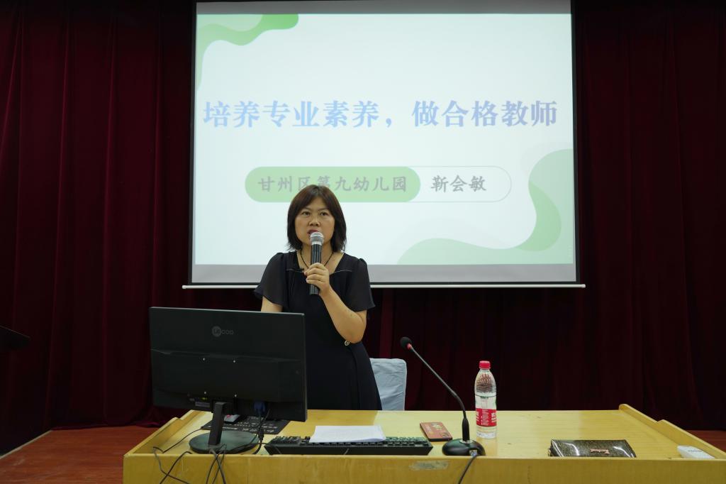 6月15日上午,甘州区第九幼儿园书记靳会敏作为了“培养专业素养、做合格教师”的报告。报告围绕什么是专业素养、小学教师应该具备的专业素养有哪些、如何培养专业素养做一名合格的教师三个方面,结合自身的成长经历进行了分享。