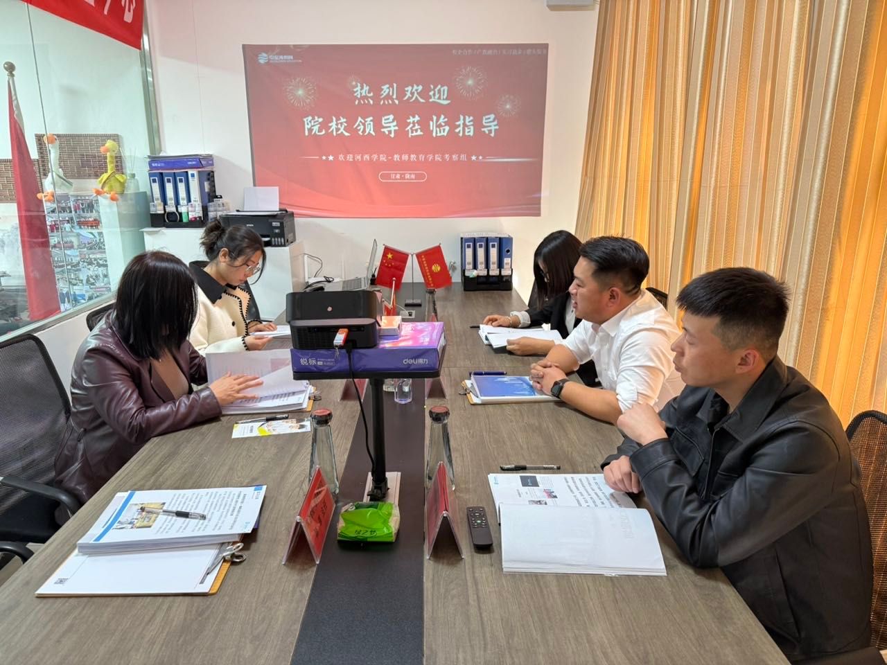 在走访过程中,公司一行受到了中至海教育科技有限公司(陇南分公司)和中至海西安分公司负责人的热情接待。公司负责人详细介绍了企业的发展历程、业务范围、企业文化以及未来发展规划,并重点阐述了对教育类专业人才的需求情况。他们表示,随着行业的不断发展,企业对于具备扎实专业知识、创新思维和实践能力的毕业生求贤若渴,期待与304永利集团唯一在人才培养、实习就业等方面开展深度合作。公司负责人向企业介绍了公司的专业设置、人才培养模式、团队队伍建设以及近年来毕业生的就业情况。