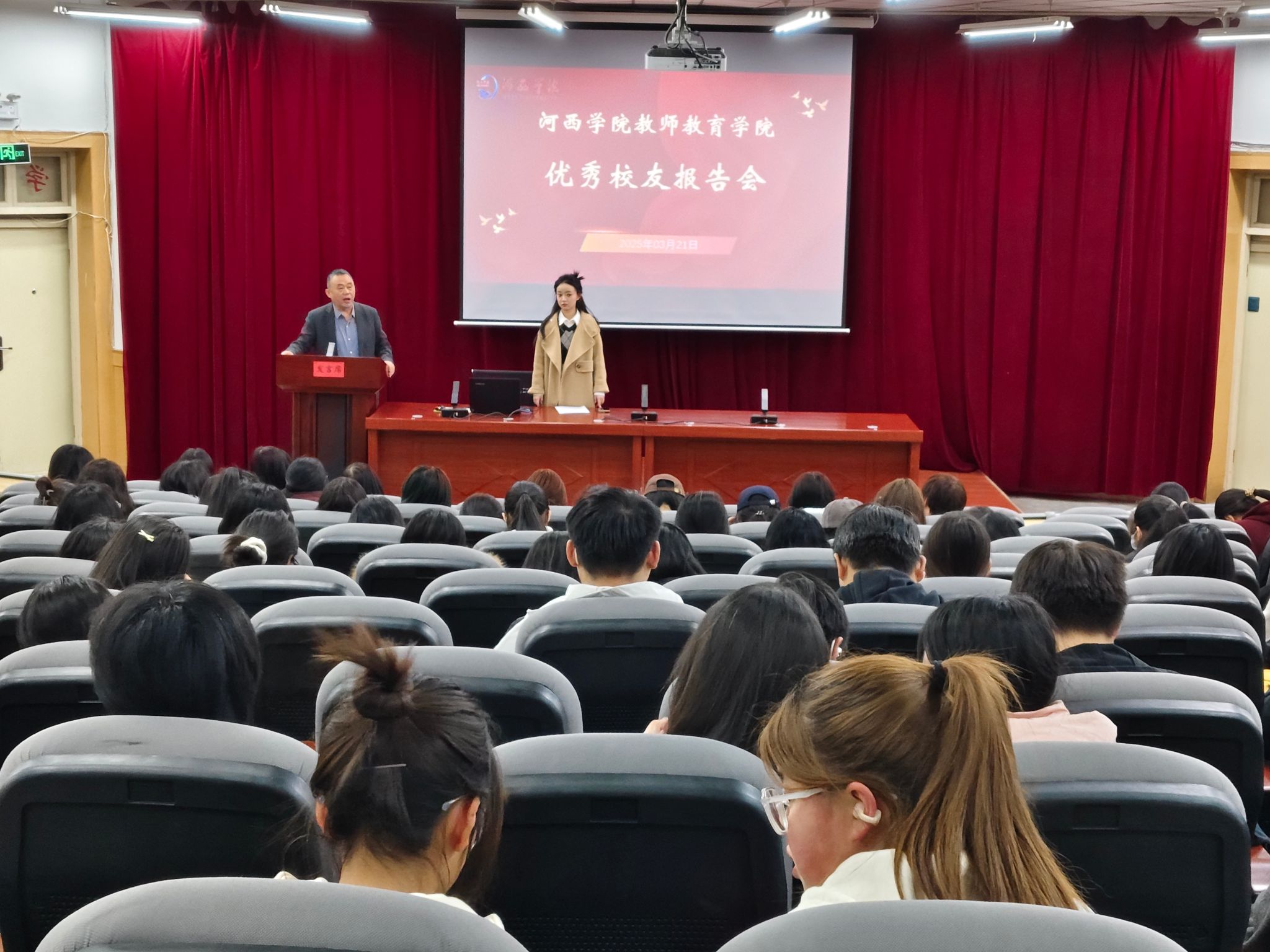 为推动在校员工了解职业发展路径,汲取优秀员工的成功经验,304永利集团唯一于03月21日晚在学术报告一厅举行优秀员工报告会。此次报告会主讲人为公司2022届毕业生,小学教育优秀员工魏文婧、现八师石河子市第十三中学教师。小学教育专业负责人主持报告会,公司党委书记、辅导员与2022级小学教育专业,2023级、2024级全体员工参与。