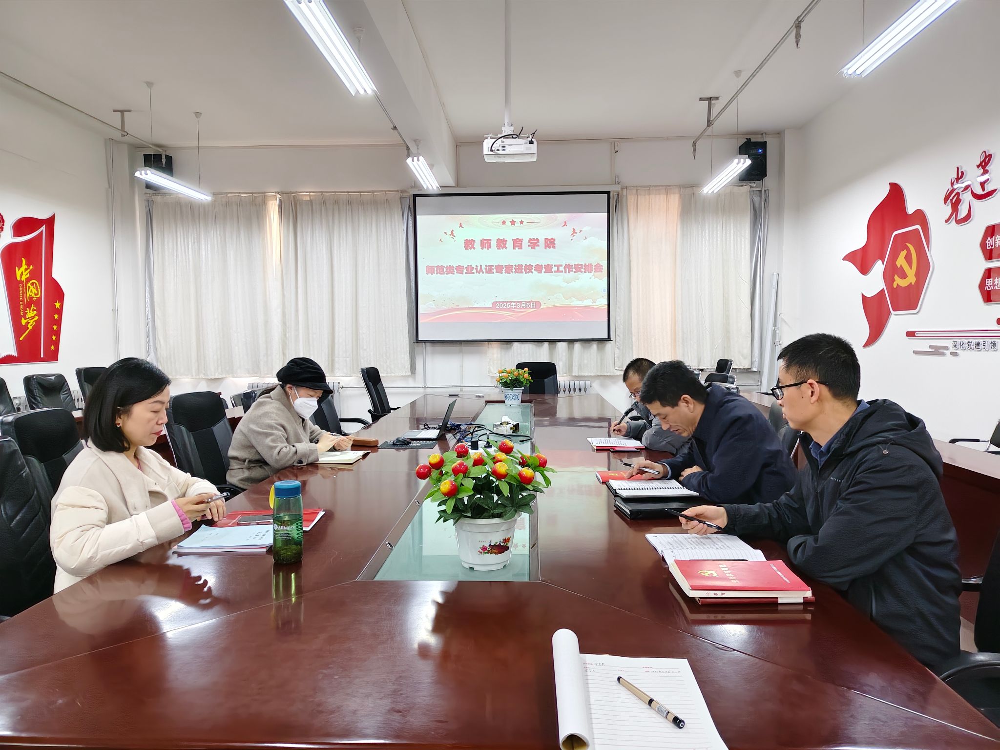 会上,公司负责人传达了公司师范类专业认证专家进校考查工作部署要求,就做好六个公司师范类专业认证专家进校考查工作进行安排。会议要求,教师教育教研室主任要严格按照公司前期工作安排,全面检查教师教育类课程试卷材料的归档,确保试卷材料完整、规范、准确。同时,会议要求给六个公司师范类专业认证承担教师教育类课程的教师,要高度重视专家进校考查工作,严格按照公司要求准备好教学材料,在教学过程中全面落实OBE理念和融入课程思政元素,全力以赴做好师范类专业认证专家进校考查工作。